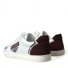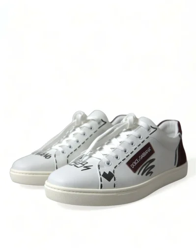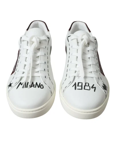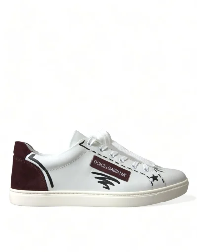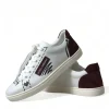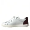White Bordeaux Leather Logo Low Top Sneakers Shoes