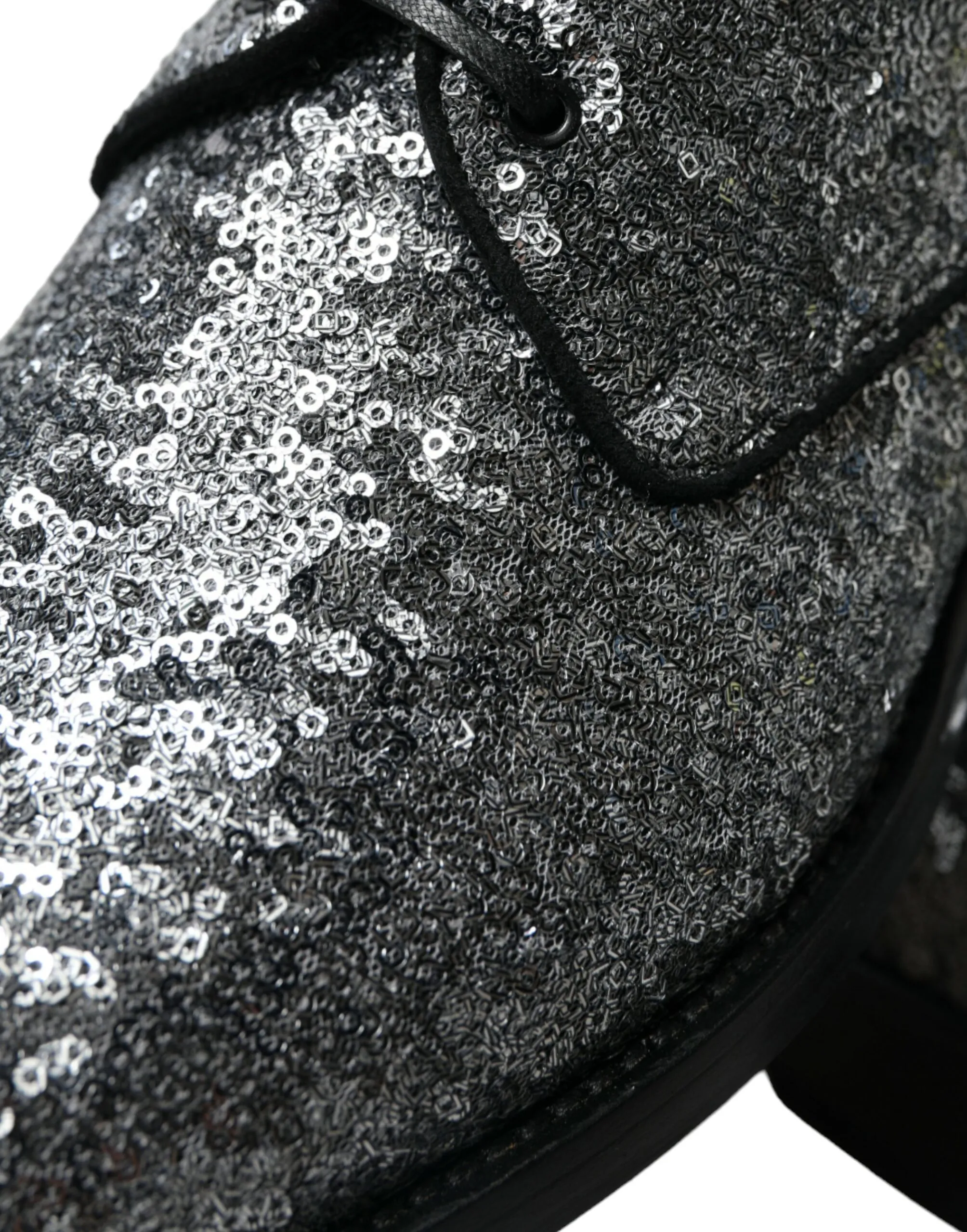 Silver Sequined Lace Up Men Derby Dress Shoes