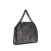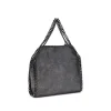 Stella McCartney’s Falabella mini Handbag is a fold-over tote that embodies the brand’s commitment to sustainable and sophisticated style. Crafted from knurled vegan Shaggy Deer fabric, it is embellished with the signature silver-tone Falabella chain and brass diamond-patterned details. The interior is lined with logo-printed materials made from recycled plastic bottles. Equipped with two top handles, shoulder strap, magnetic snap closure and engraved logo medallion, it features a main compartment and a handy internal pouch pocket.