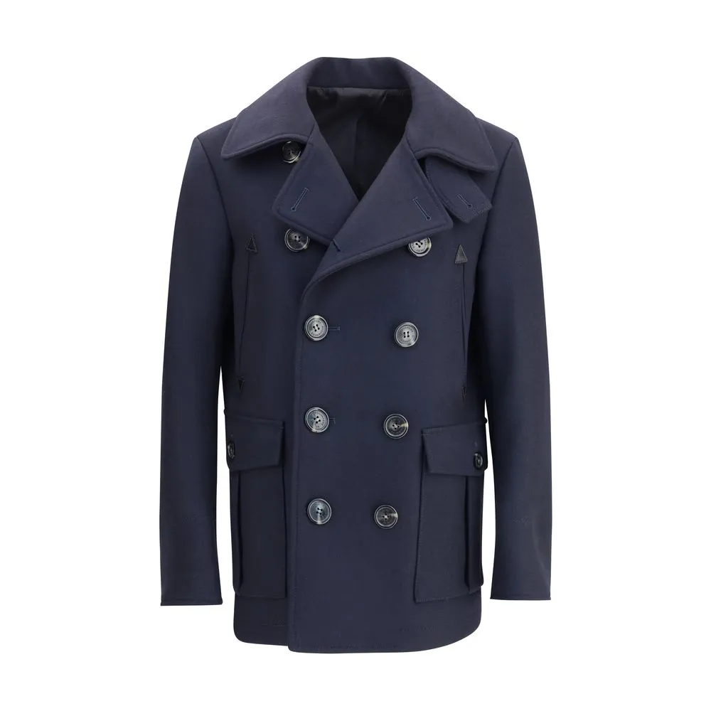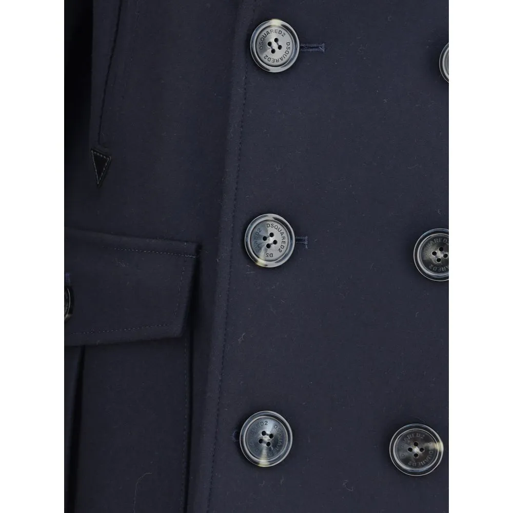 Dsquared2’s wool caban Coat reinterprets an outerwear classic with the house’s unmistakable style. Featuring classic lapels and a double-breasted button closure, it has two side flap patch pockets and a back slit, which enhances its structured line and fit. An elegant and sharp garment, perfect for the cold season.