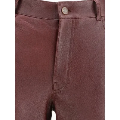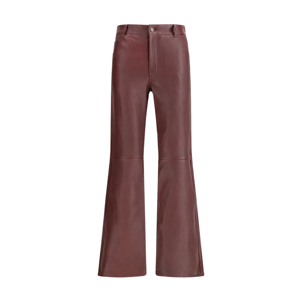 The flared lambskin leather trousers by Chloé, crafted from slightly textured leather for a refined and distinctive look. Featuring a front zip and logo-engraved button closure, belt loops and a classic five-pocket design. An iconic and timeless piece that perfectly combines elegance with modern sophistication.