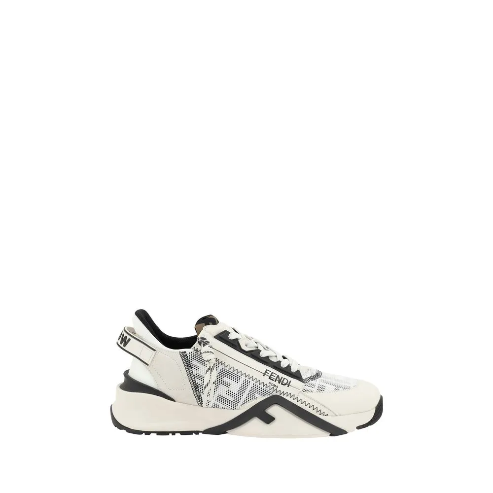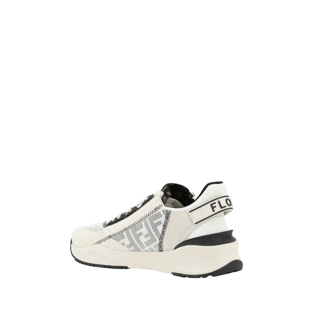 Fendi’s Flow leather Sneakers are a bold and contemporary design that combines comfort and luxury. With a textured sole, these sneakers offer excellent grip and stability. The elongated toe gives a sleek look, while the side panels, decorated with the brand’s embossed FF print, emphasize Fendi’s identity in an elegant way. The contrasting panel design creates a dynamic look, while the logo-embossed press-stud label on the tongue and the zipper appliqué on the back of the foot offer practicality and an additional stylistic detail. The front lace-up closure ensures a comfortable and secure fit, complementing the sophisticated design of these sneakers.