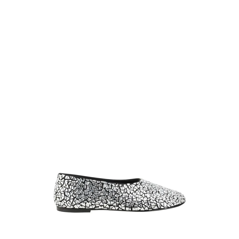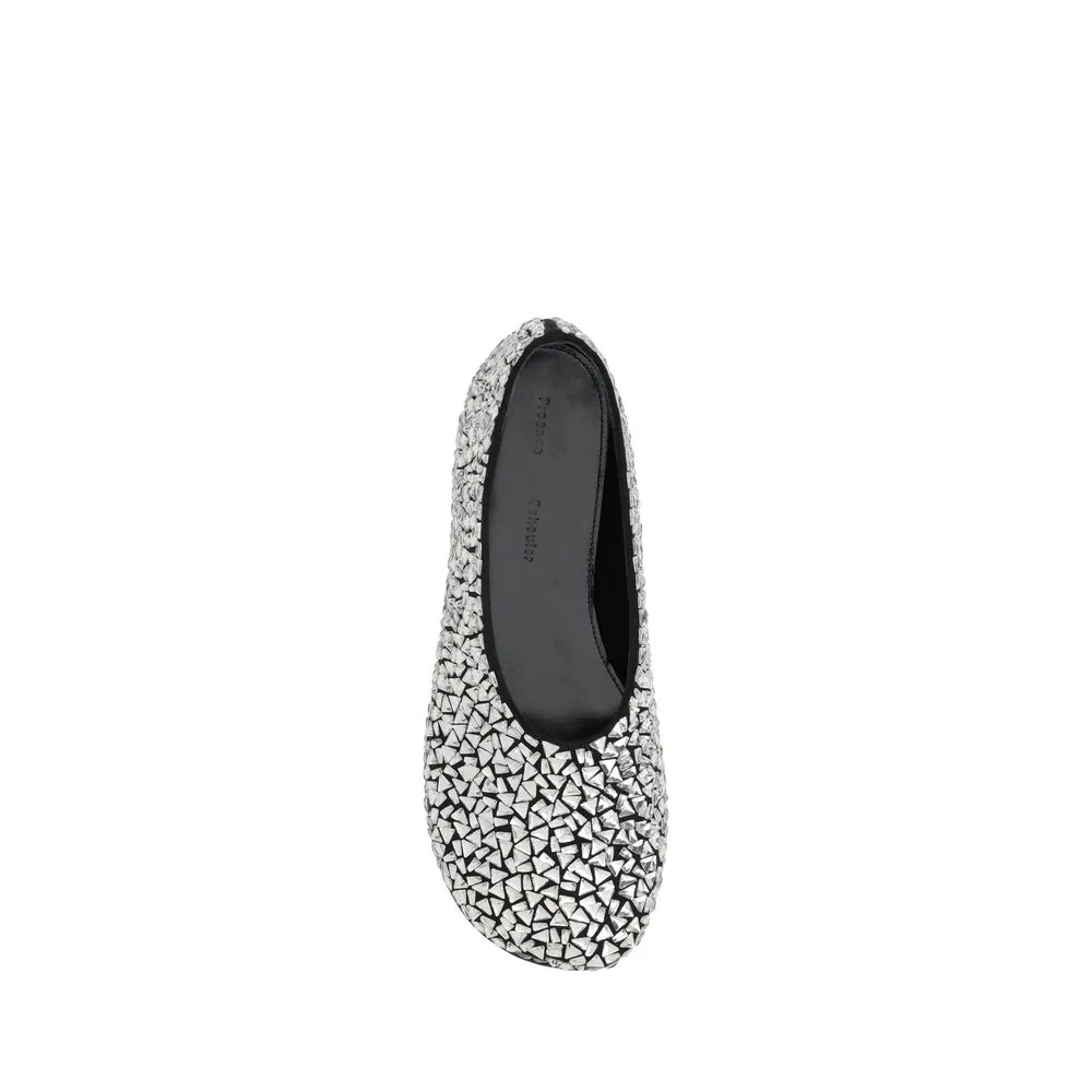 Proenza Schouler’s Glove Embellished Ballerinas are meticulously crafted with over 750 mirrored embellishments decorating the exterior of the shoe. They feature a slip-on silhouette with a rounded toe and low heel.