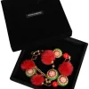 Gorgeous brand new with tags, 100% Authentic Dolce & Gabbana red rabbit fur crystal torero waist gold brass belt.