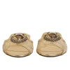 sandals exude romantic glamour and luxury. Crafted in delicate gold lace, they feature the iconic Devotion heart emblem adorned with intricate detailing. The slip-on design offers effortless elegance and comfort, perfect for both daytime sophistication and evening allure.