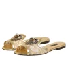 Gold Devotion Lace Flats Slip On Sandals Shoes