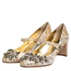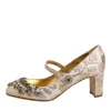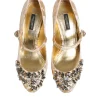 Gold Jacquard Crystal Mary Janes Pumps Shoes
