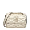 The product with MPN FARONEFLAPSOJVQCHAMPAGNECRYSTAL and code F85123 leather in gold is a shoulder bags designed by Jimmy Choo. It has features like front detail, metallic effect.