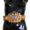 Gorgeous brand new with tags and box, 100% Authentic Dolce & Gabbana gold-tone floral crystal embellished wide waist belt.
