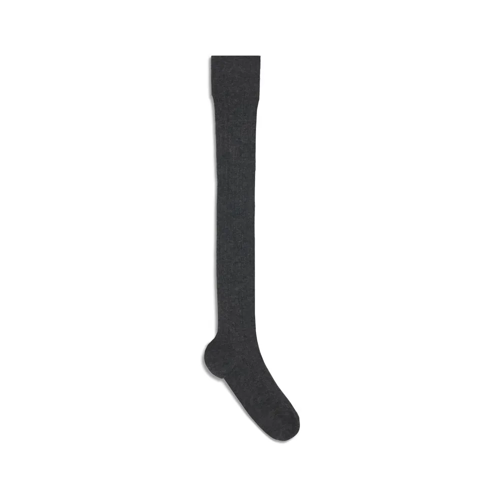 Ribbed stretch cashmere knit Socks by Brunello Cucinelli offer a soft and comfortable fit, thanks to high-quality cashmere. With Parisian-style height, they stop just above the ankle, adding an elegant and sophisticated touch to any look.