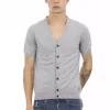 Step into the realm of superior Italian craftsmanship with this exquisite ‘Baldinini Trend’ Short Sleeve Sweater. A harmonious blend of comfort and high-end fashion, it features a stylish V-neck design and precise button closure. This piece radiates effortless sophistication in a versatile gray shade, making it an impeccable choice for the modern man’s wardrobe. Add a touch of Baldinini’s iconic elegance to your collection.