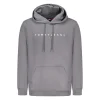 Elevate your wardrobe with the confident allure of Tommy Hilfiger’s hooded sweatshirt. It’s the epitome of off-duty chic, seamlessly combining comfort with the iconic style of the legendary brand. Crafted with an eye-catching embroidery logo front and center, it features a handy central pocket for added functionality. This gray hoodie is made from a blend of premium cotton and polyester, ensuring warmth and durability. With its sustainable touch, using 50% regenerative cotton, it’s a fashion statement with a conscience. Perfect for any casual occasion, become the embodiment of trendy sophistication with Tommy Hilfiger.