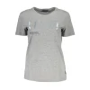 Indulge in the epitome of casual chic with Guess Jeans’ latest offering. This sassy short sleeve t-shirt boasts a wide neck that adds a hint of allure, while the standout print and iconic Guess logo command attention. Perfectly crafted from sumptuous cotton, this Gray top is sure to be a staple in your trendy wardrobe. Get ready to turn heads and make a bold statement with this must-have piece!