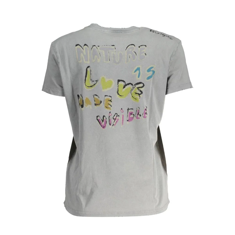 Elevate your wardrobe with the exquisite flair of Desigual. This chic short sleeve t-shirt bears the unmistakable charm of the iconic brand. Featuring a captivating print and the signature Desigual logo, it’s the epitome of fashion with a statement. Crafted in PT from the finest cotton, it assures both style and comfort. Its round neck and tantalizing gray hue complement any ensemble with a bold and trendy twist.