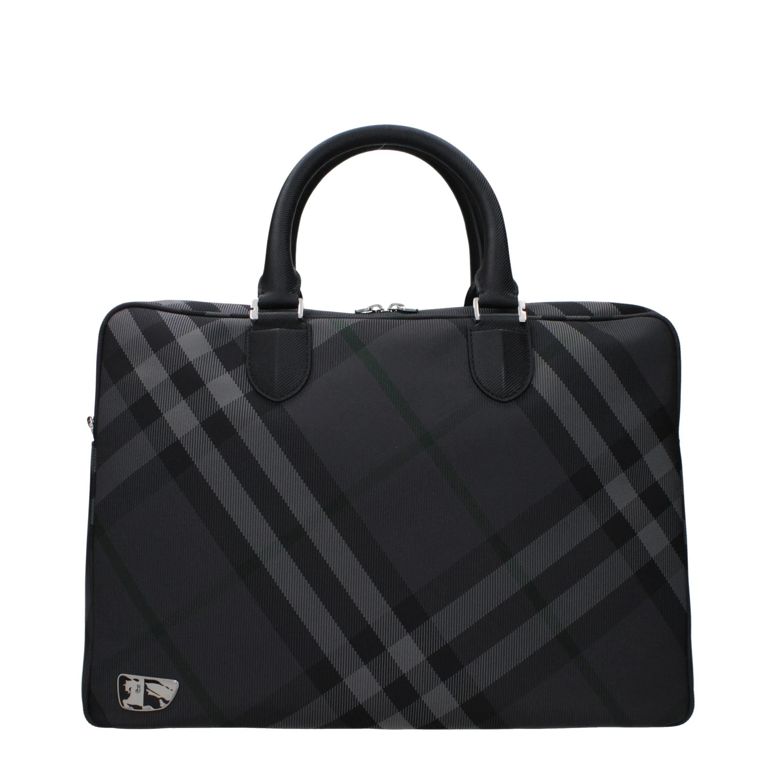 The product with MPN 809734CARTELLA8 and code F82430 fabric in gray is a work bags designed by Burberry. It has features like front logo, adjustable shoulder, removable shoulder.