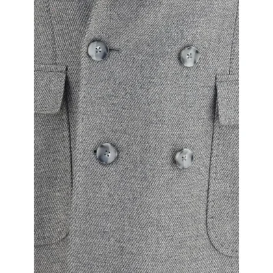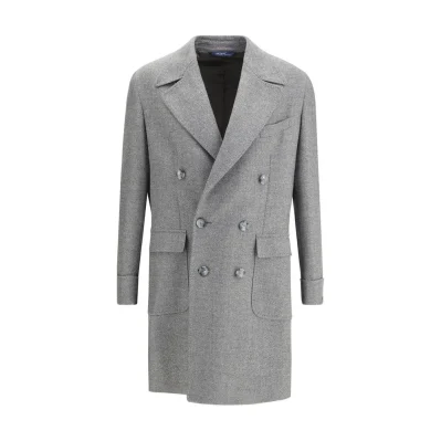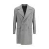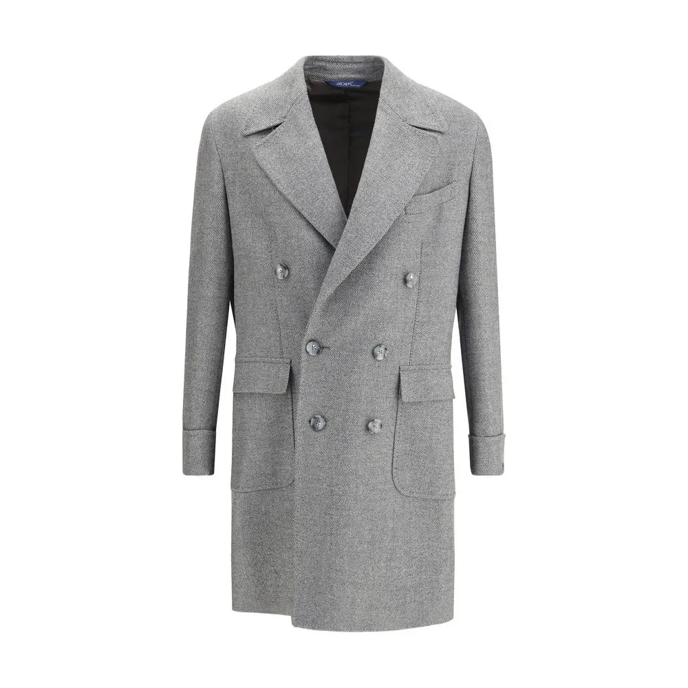 The Gi Capri Coat is a refined double-breasted design crafted from pure virgin wool, featuring classic lapels and two front flap pockets. A fabric band on the back provides a distinctive and modern touch, elevating this timeless piece with a note of understated sophistication.