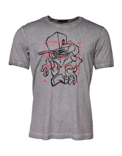 Gray Graphic Print Cotton Crew Neck T-shirt