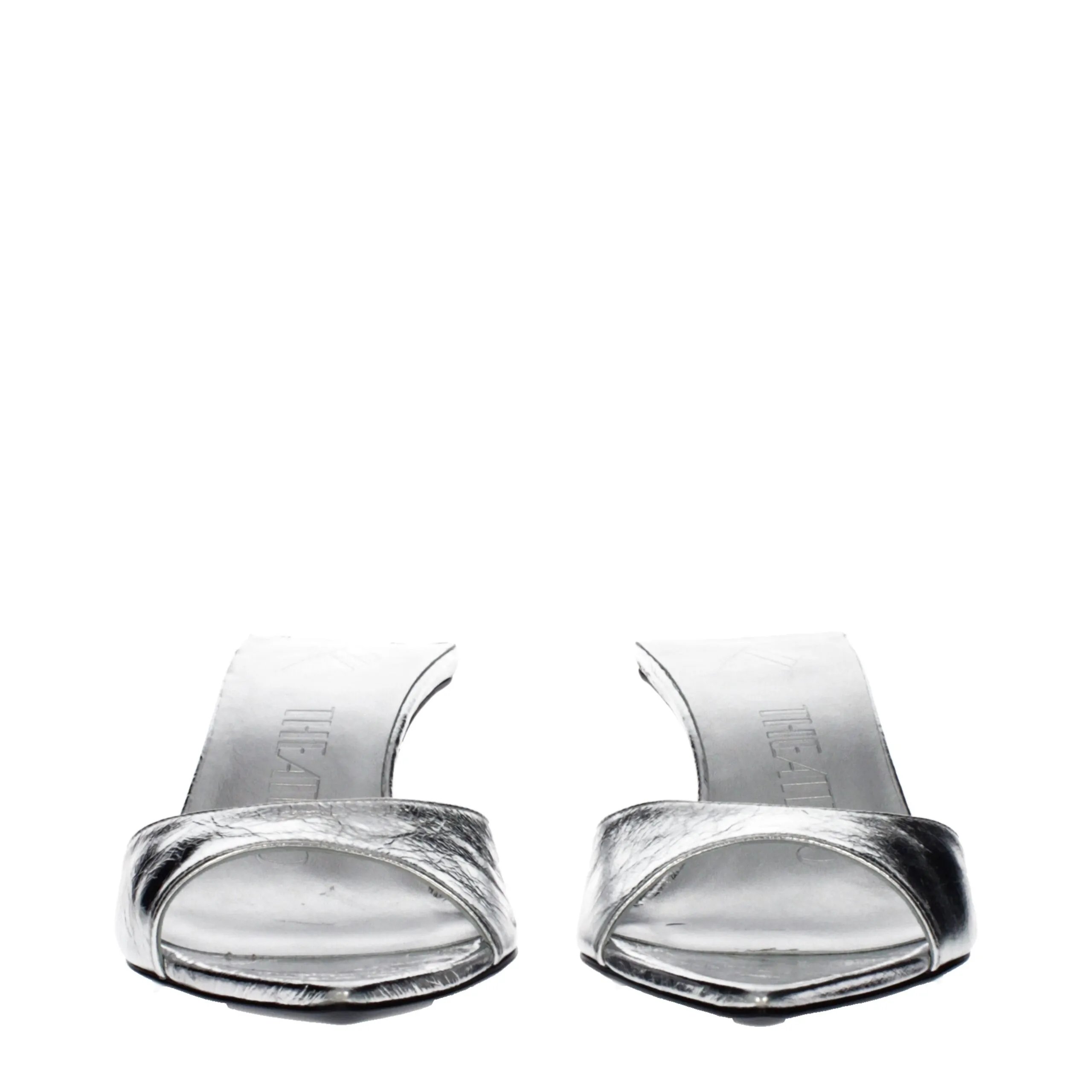 The product with MPN SH00838LBT070AA002 and code F85310 leather in silver is a sandals designed by The Attico. It has features like vintage effect.