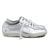 Experience the epitome of Italian craftsmanship with these Golden Goose men’s sneakers. Exuding a bold and trendy aura, these kicks are designed for those who dare to stand out. Crafted from premium silver patent calfskin leather, they boast the perfect blend of luxury and street style. The durable rubber sole promises comfort and longevity, making every stride a statement of elegance.