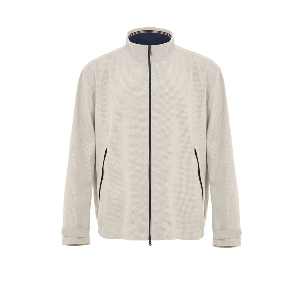 Paul & Shark Micro-Perforated Technical Fabric Jacket. Front zip opening, two side zip pockets, elastic waistband, inside pocket. Mesh lining.