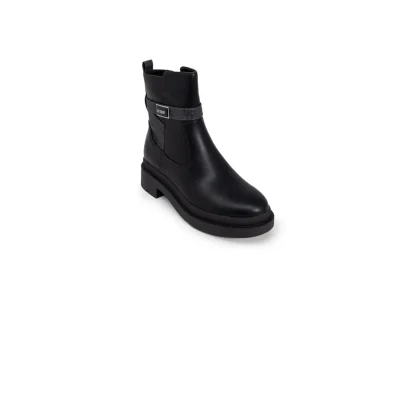 The Guess OVELLE2 FLTOVE ELE10 women’s ankle boots combine contemporary style with practical comfort. Crafted entirely from high-quality polyurethane, these boots feature a sleek, modern silhouette with a rounded toe and a chunky, treaded sole for excellent stability and durability. A standout detail is the side strap adorned with the iconic Guess logo in metal, adding a touch of elegance and brand recognition. The convenient side zip ensures easy and quick wear, while the rear pull tab enhances both functionality and style. Perfect for completing casual or more refined outfits, these ankle boots are ideal for the autumn-winter season and for those seeking a versatile, fashionable accessory.