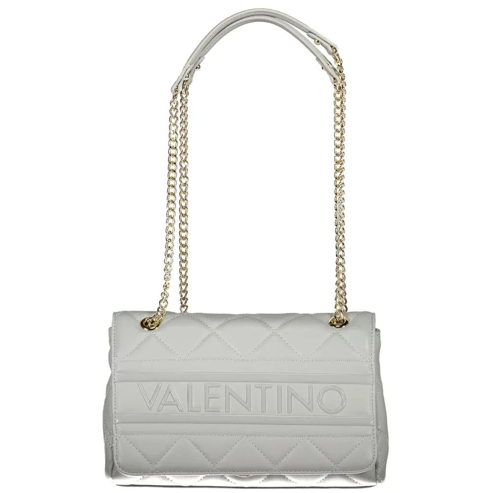 Step out in style with the Valentino Bags handbag, a perfect blend of elegance and functionality. Featuring a sophisticated gray tone, this bag boasts a sleek chain and dual handles, offering versatile wearability. The spacious interior includes two pockets, ensuring your essentials are organized and secure with both zip and button closures. Contrasting details and the iconic Valentino logo add a touch of luxe to your every ensemble.