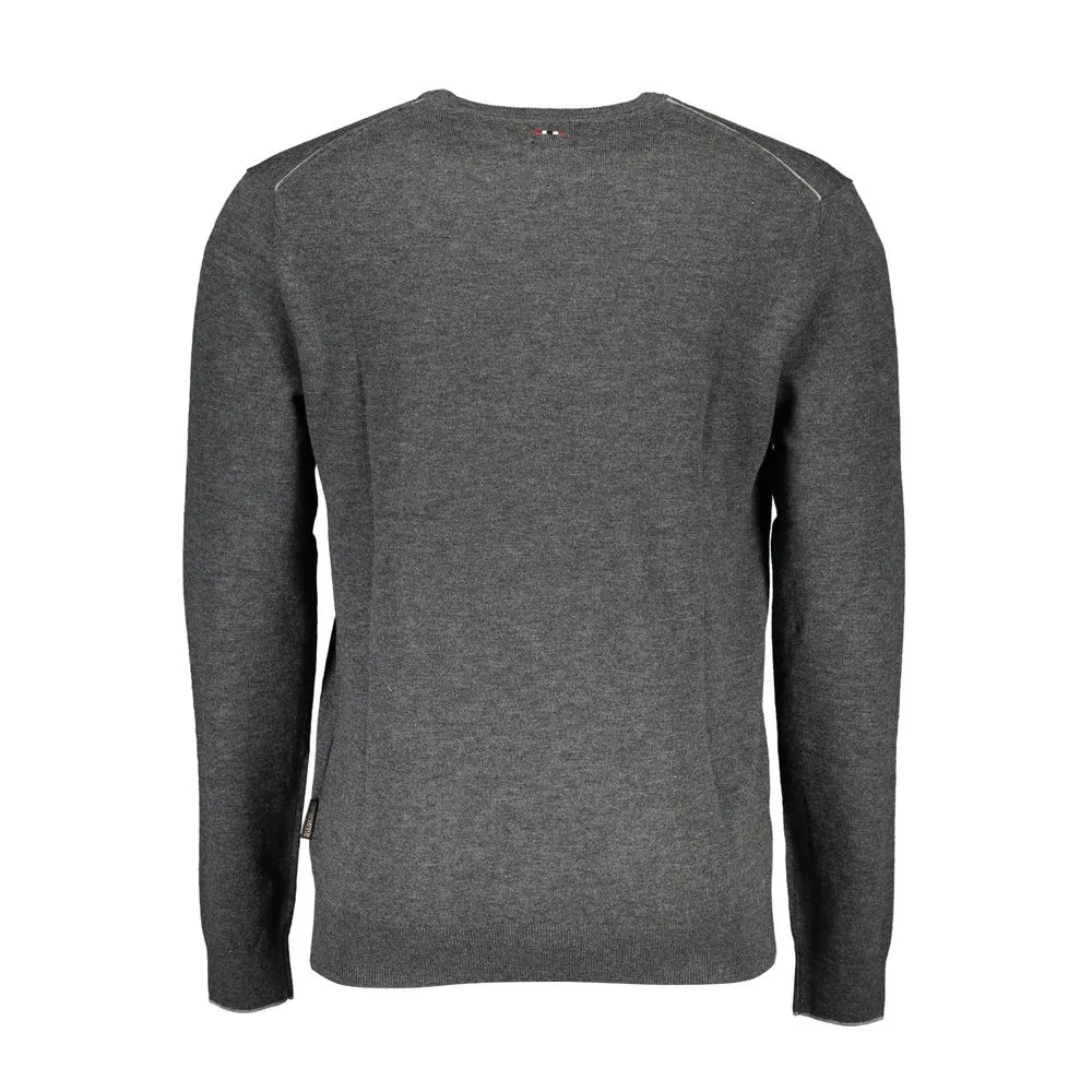 Elevate your style game with Napapijri’s expertly crafted sweater, a testament to timeless elegance with a contemporary edge. This 100% wool piece promises unparalleled comfort and warmth, making it an essential addition to any discerning gentleman’s wardrobe. Its subtle gray hue is accented by the iconic Napapijri embroidery and logo, seamlessly blending luxury with a touch of brand prestige. Perfect for layering or standing out on its own, this sweater is a staple for those who appreciate fine quality and bold design.