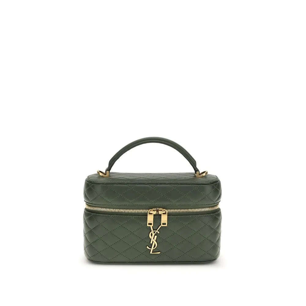 The Vanity Gaby leather Handbag by Saint Laurent combines elegance and practicality in a compact and refined design. Featuring an all-over quilted finish, it features a flat top handle, a double-slider twist closure, and an adjustable and removable flat shoulder strap. The distinctive touch is the three-dimensional plaque with the iconic YSL logo on the front panel.