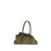 The small La Passeggiata Shoulder Bag by The Attic is made of soft suede calfskin, giving it a sophisticated elegance. Featuring two top handles and a zippered closure, it combines practicality and style in a compact, refined design.