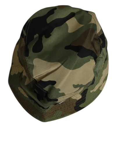 Green Camouflage Polyamide Logo Bucket Cap Hat