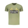Exude effortless sophistication with the Cavalli Class crew neck T-shirt. Stand out with the distinctive print and signature logo, a perfect blend of style and comfort crafted in soft cotton material. For the man who dresses with confidence, this green tee is an essential wardrobe staple. Make a bold statement and show off your trendsetting style with every wear.
