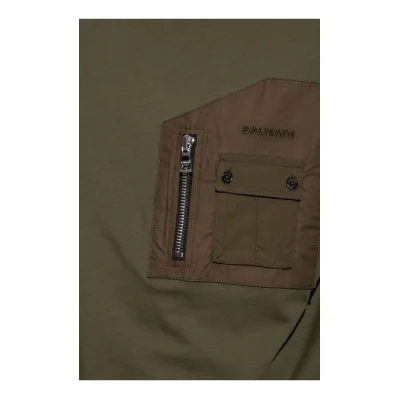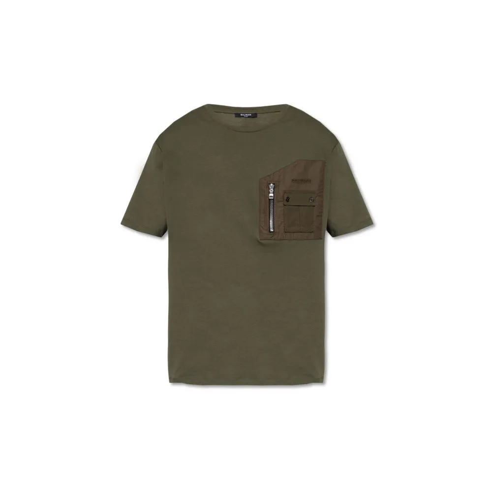 Balmain cotton t-shirt with short sleeves and chest pocket with zip fastening and additional pocket with button fastening