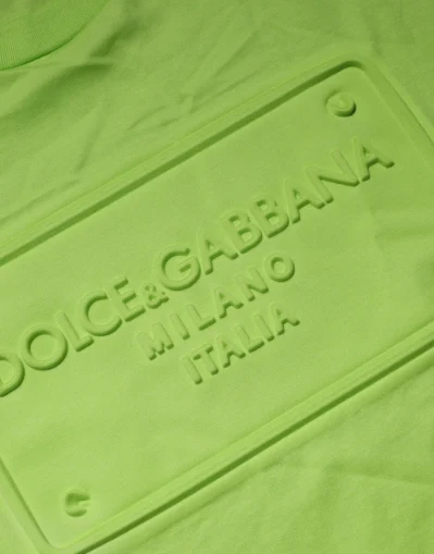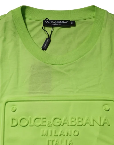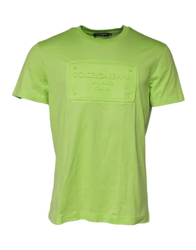 Green Embossed Logo Cotton Crew Neck T-shirt