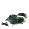 Green Gold Crystal Fur Headset Audio AUX Headphones