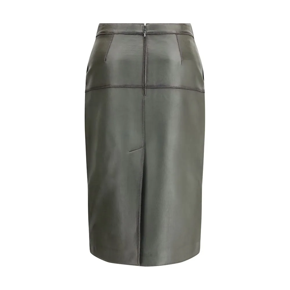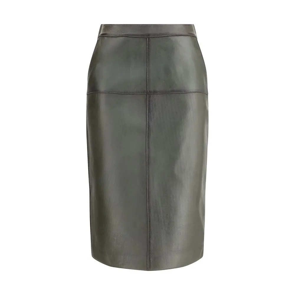 The leather pencil Skirt by P.A.R.O.S.H. is an item with a strong and refined character. Made of soft leather, it features a back zipper closure, two side welt pockets and a midi length that elegantly enhances the silhouette.