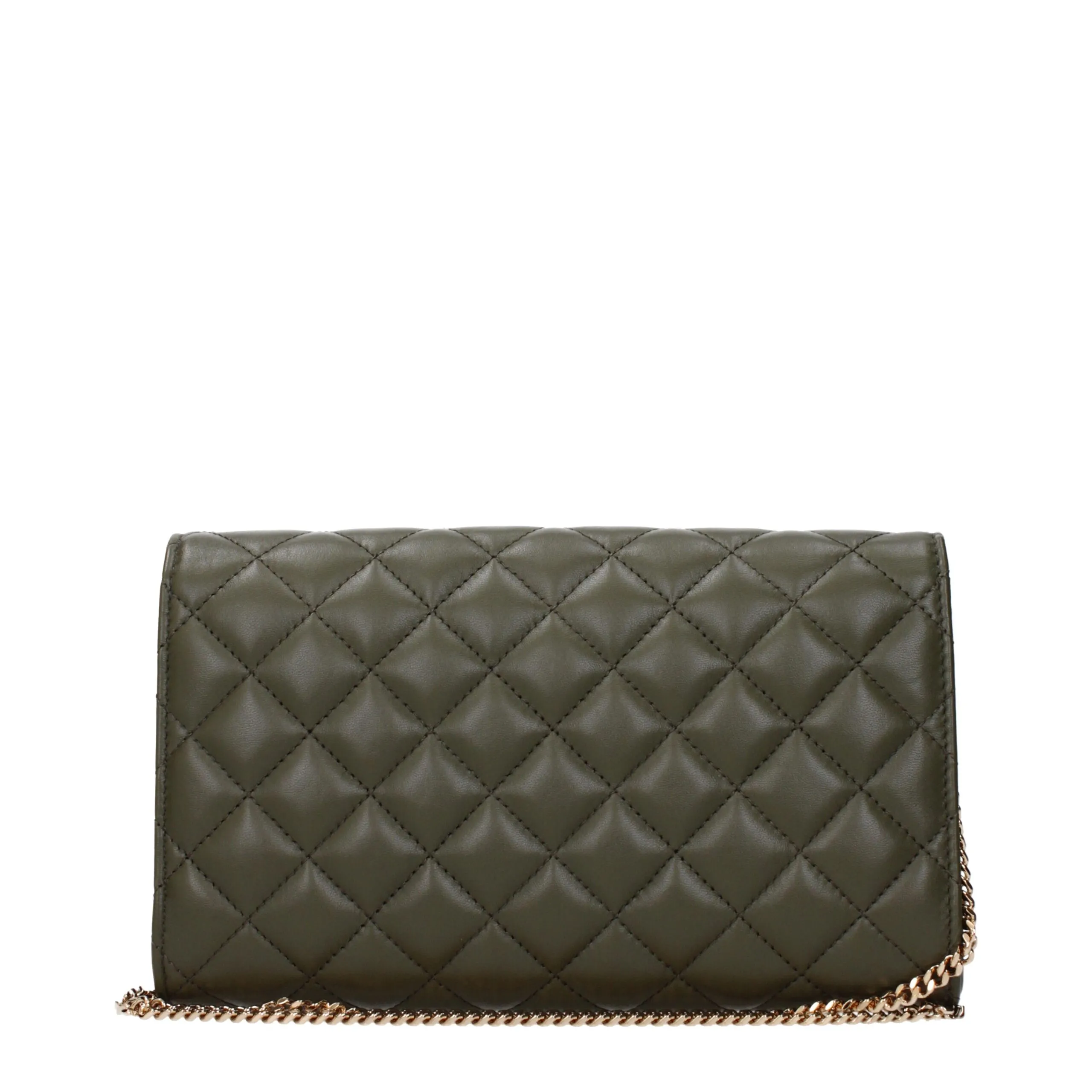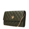 The product with MPN DBSI159S1A039121GM1V and code F83949 leather in green is a clutches designed by Versace. It has features like divider inner pocket, front logo, removable shoulder.