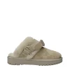 The product with MPN 8095351 and code F82605 suede in green is a slippers and clogs designed by Burberry. It has features like fur detail.