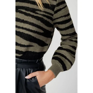 The Jacqueline de Yong JDYLORRAINE ANIMAL L/S PULLOVER KNT women’s sweater stands out for its modern and eye-catching design with a stylish animal print pattern. Crafted from a high-quality blend of 58% nylon, 26% viscose, and 16% polyester, it offers a soft feel and comfortable fit. The regular cut and classic crew neck make it perfect for creating casual and trendy looks during the autumn and winter seasons. Ribbed cuffs and hem ensure a perfect fit and elegantly enhance the feminine silhouette. Ideal to pair with both tailored trousers and jeans for a versatile and fashionable outfit.