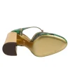 Vally pumps radiate sophistication and timeless charm. Crafted from glossy green patent leather, they feature a rounded toe and a sturdy block heel for classic femininity and comfort. The design reflects the brand’s signature vintage-inspired elegance, making them the perfect choice for both refined daywear and evening occasions.