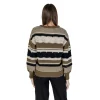 The ICHI IHASTRA 20121976 women’s sweater is the perfect choice for those seeking both style and comfort during the colder seasons. Made from a sustainable blend of 55% recycled polyester and 45% polyester, this knitwear piece stands out for its eco-friendly materials and high quality. The design features refined horizontal stripes with openwork knitting and raised details, creating a dynamic and modern effect. The regular fit and long sleeves ensure comfortable wear, while ribbed edges at the cuffs, hem, and neckline add a touch of elegance. Ideal to pair with trousers or skirts for a casual and feminine look, this sweater is a must-have for your winter wardrobe.