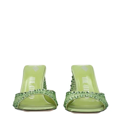 The product with MPN S772V015T080 and code F81695 satin in green is a sandals designed by The Attico. It has features like rhinestone.