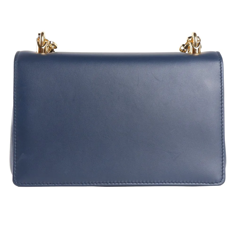 Indulge in the epitome of Italian luxury with the stunning Dolce & Gabbana calfskin shoulder bag. This exquisite piece emanates sophistication, featuring a sleek magnetic button closure that opens to reveal an interior as elegant as its exterior. Adorned with a striking gold-tone metal logo, it’s a true statement of high-fashion prowess. Its chain shoulder strap adds a touch of glamour, perfect for transitioning from daytime chic to evening elegance. Sized ideally at 21.5x14x7 cm, this blue beauty is a must-have for the fashion-forward.