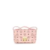 The Handbag by MCM features a rectangular design with rounded corners. Made of premium coated leather and carefully selected canvas. The meticulously finished interior is functional and organized, with multiple compartments and a zippered pocket. Luxurious details, such as the gold metal snap closure with engraved decoration and engraved MCM logo, enhance the brand’s excellent craftsmanship.