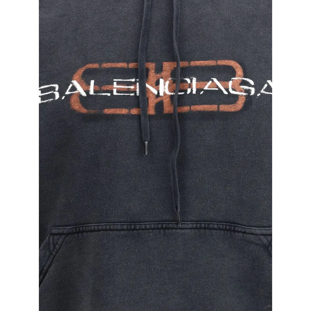 The Balenciaga hooded Sweatshirt brings a luxury twist to a streetwear essential. Crafted from soft cotton, it features a kangaroo pocket at the front and ribbed cuffs and hem for a structured finish. The logo graphic across the chest delivers a bold, recognizable accent, striking the balance between everyday comfort and urban sophistication.