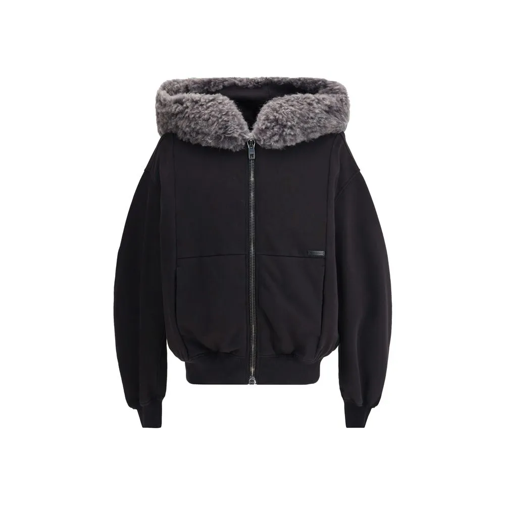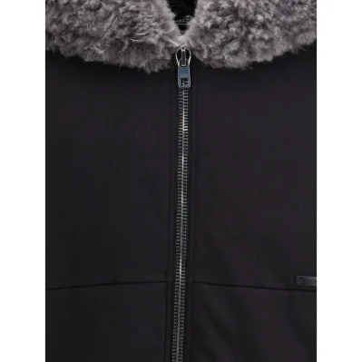 The hooded Sweatshirt by Dolce & Gabbana blends comfort and refinement, elevated by a wide fur-trimmed hood that adds a touch of elegance. A zip closure, central pockets, and pleated sleeves define a practical yet sophisticated design. Ribbed cuffs and hem add structure, while the fur placket detail completes the piece with a distinctive finish.