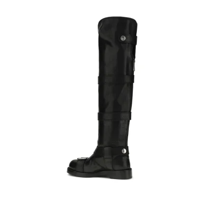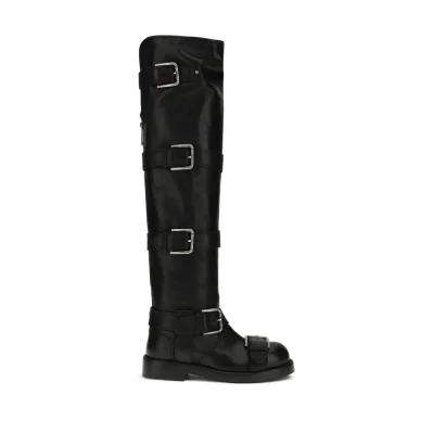 Extra long buckled Boots by Dolce&Gabbana embody a bold and sophisticated aesthetic. Crafted in the signature Bernini shape, they feature a leather heel-shell insole embellished with a custom label. Buckles, arranged throughout the shaft, add a bold and distinctive touch, while the palladium Miami finish completes the design with contemporary elegance.