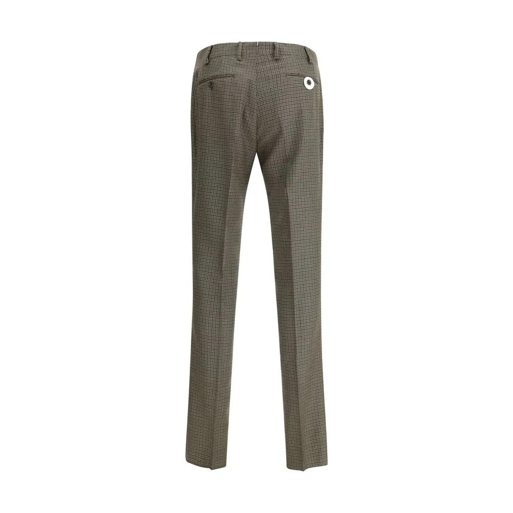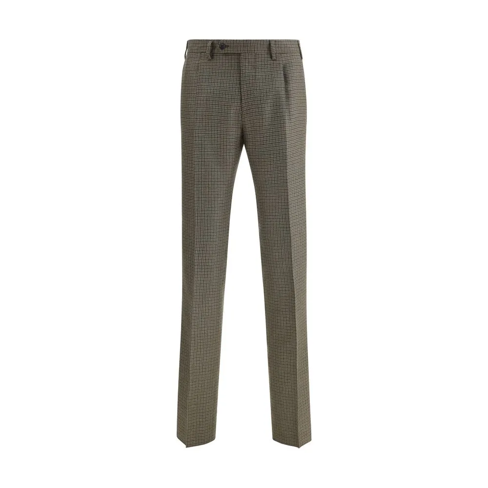 Germano’s Virgin wool Pants feature a refined houndstooth pattern and a classic straight cut. Featuring a zipper and button closure, belt loops, two side welt pockets and two back pockets, they combine traditional elegance and sartorial care for a timeless look.