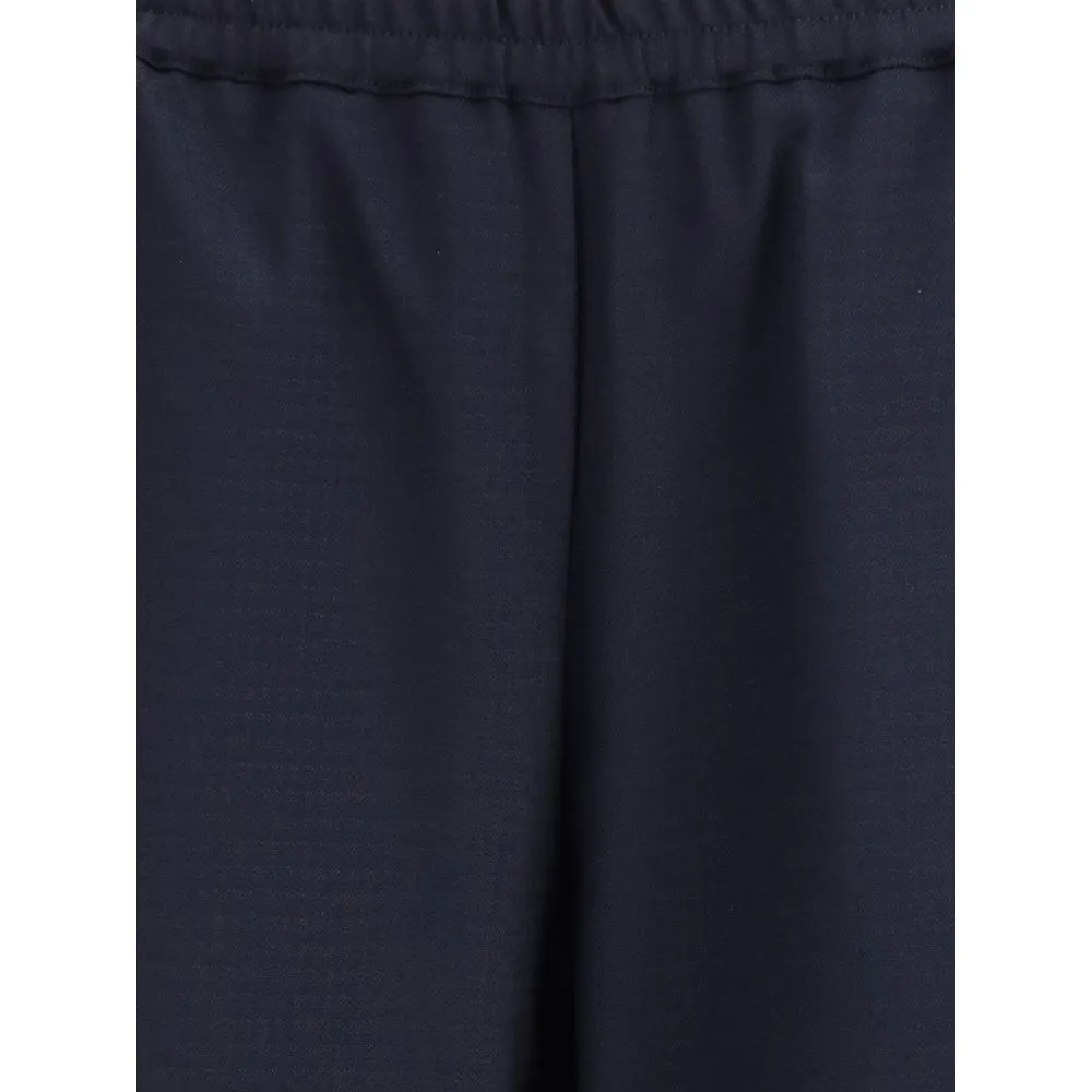 Blue Cotton Casual Pants