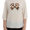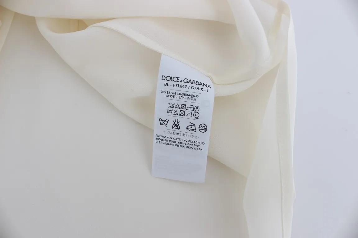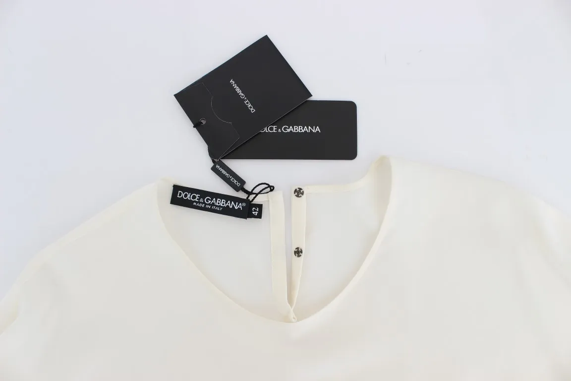 Gorgeous brand new with tags, 100% Authentic DOLCE & GABBANA white silk sequined key blouse top. This item comes from the exclusive MainLine Dolce & Gabbana Collection.