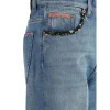 Valentino’s Jeans combine a classic design with unique details. The straight style features a front zipper and button closure, enhanced by a floral applique on the five pockets and bottom, adding a distinctive and creative touch. Belt loops at the waist allow you to customize the fit, while a concealed zipper fly and single exposed button closure complete the look. The contrasting logoed label emphasizes the brand’s iconic status.